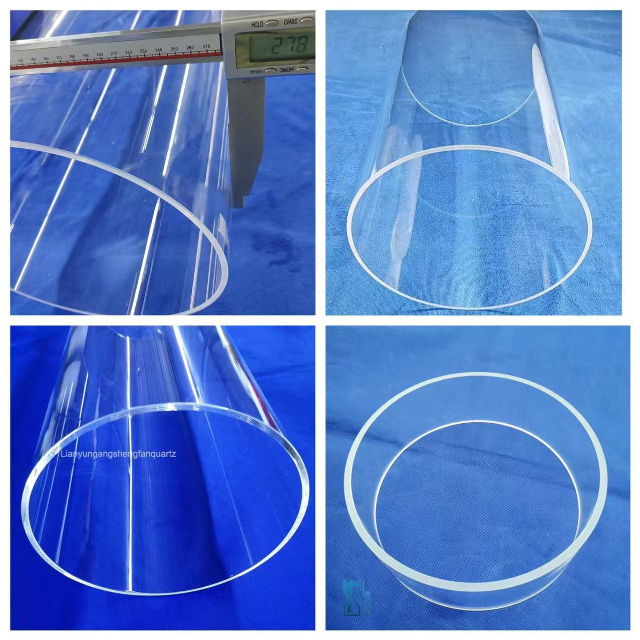 Tabung kaca kuarsa silika bening menyatu terbuat dari pasir kuarsa kemurnian tinggi dengan stabilitas kejut termal yang sangat baik dan transmisi tinggi.Hal ini banyak digunakan dalam lampu listrik/laser/lensa/instrumen optik/jendela suhu tinggi.